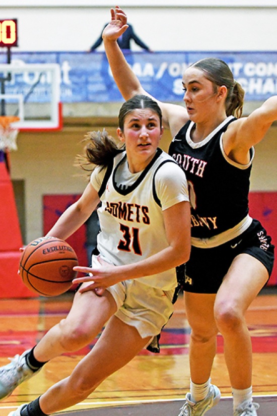 Crater guard Taylor Young drives past South Albany's Maddie Angel in the second half. Young led all scorers Saturday with 25 points.