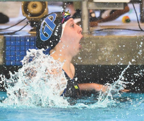 Sahara Fino reacts after her win in the girls 100 breaststroke Photos By: Joel Takarsh